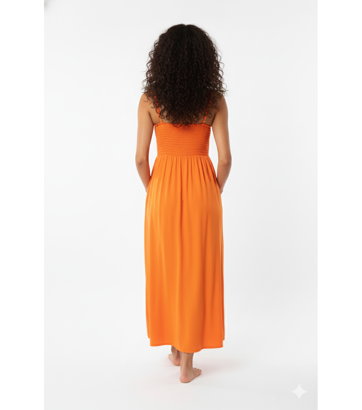 İp Askılı Turuncu Rahat Giyim Elbise – Yazın En Enerjik Hali